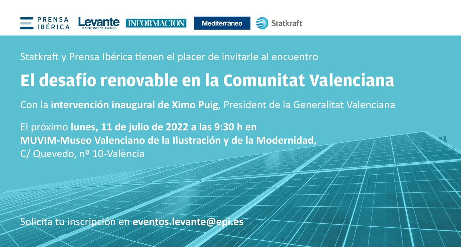 El encuentro, que cuenta con la colaboración de Statkraft, tendrá lugar el 11 de julio en el Muvim y contará con la intervención inaugural del president de la Generalitat Valenciana, Ximo Puig.