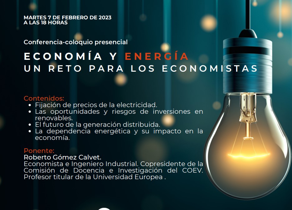 Conferencia-coloquio presencial organizada por el Colegio de Economistas de Valencia Economía y Energía, un reto para los economistas