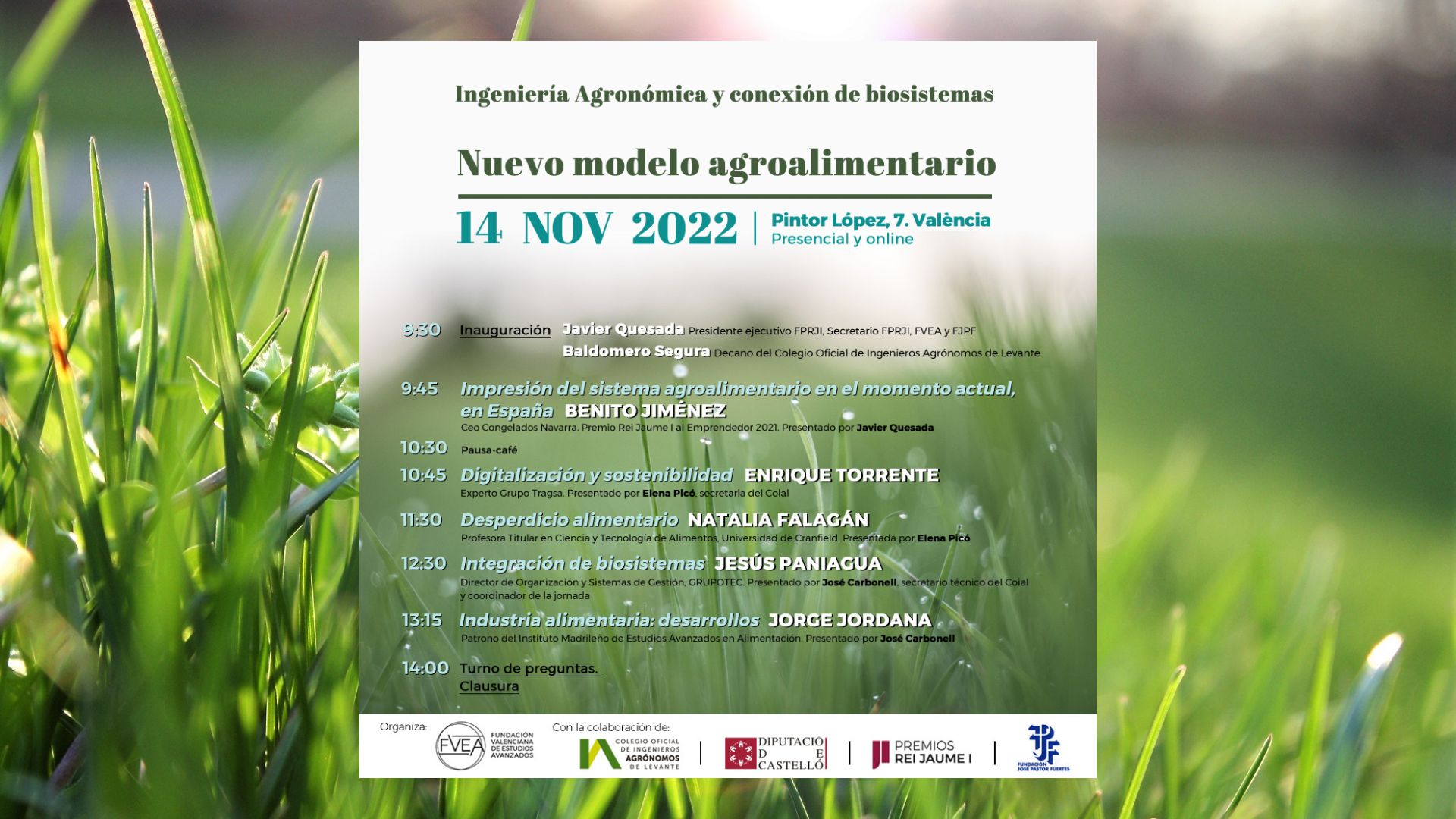 La Fundación Valenciana de Estudios Avanzados organiza la Jornada ‘Ingeniería Agronómica y conexión de biosistemas: Nuevo modelo agroalimentario’ que se celebrará el lunes 14 de noviembre de 2022 en el salón de actos de la sede de la Fundación (C/Pintor López, 7 – 46003 Valencia)