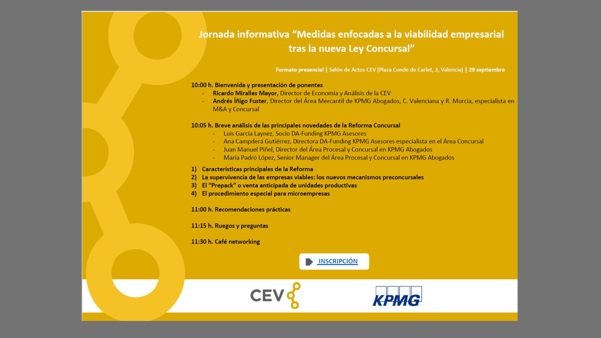 Jornada organizada por la CEV «Medidas enfocadas a la viabilidad empresarial tras las nueva Ley Concursal»