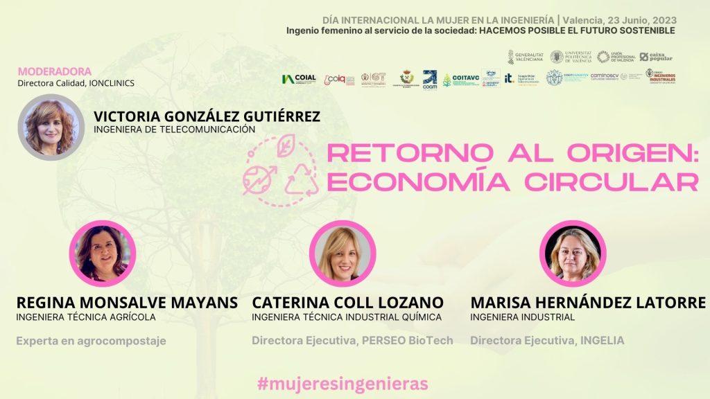 La tercera taula redona, relativa a “Retorn a l’origen: Economia Circular” amb la Moderadora Victoria González, Enginyera de Telecomunicació i Directora de Qualitat en IONCLINICS, va comptar com a Ponents amb Regina Monsalve, Enginyera Tècnica Agrícola i Experta en agrocompostaje; Caterina Coll, Enginyera Tècnica Industrial Química i Directora Executiva de PERSEO BioTechnology i Marisa Hernández, Enginyera Industrial i Directora Executiva de INGELIA.