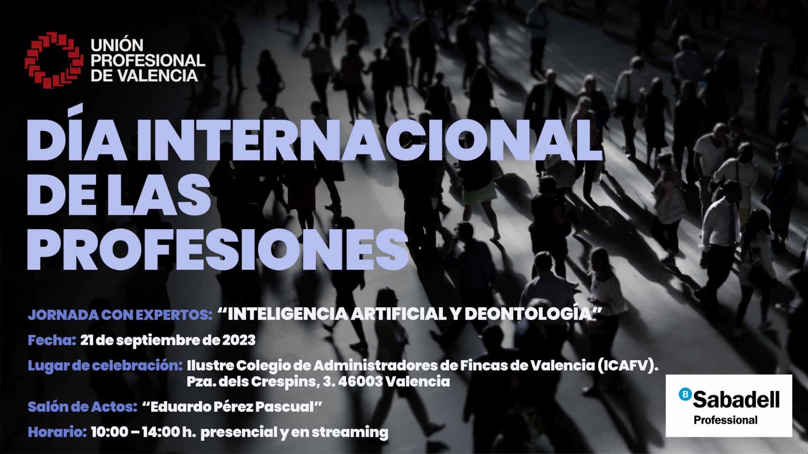Amb motiu del “Dia Internacional de les Professions” que se celebra cada 23 de setembre, Unió Professional de València (UPdV) organitza per a 2023 (21-09-23) una Jornada amb Experts de diferents sectors i branques professionals d’interés per a qualsevol ocupació.