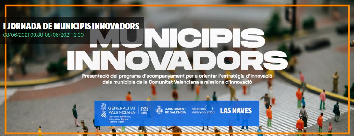 La Direcció General d’Innovació de la Generalitat Valenciana i el centre d’innovació Las Naves, de l’Ajuntament de València, presenten el pròxim 8 de juliol de 09.30 a 13.00 hores el Programa d’acompanyament per a orientar l’estratègia d’innovació dels municipis de la Comunitat Valenciana a missions d’innovació.