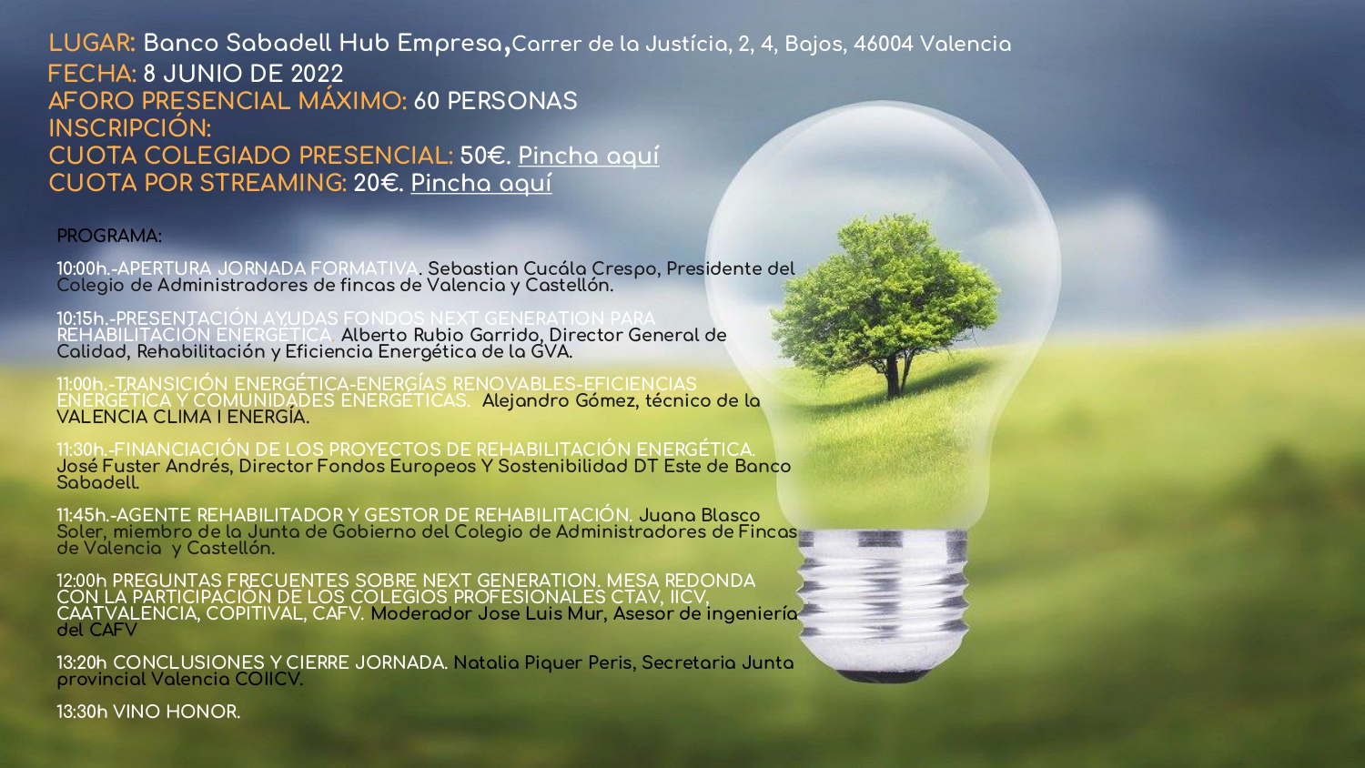 10:15h.-PRESENTACIÓ AJUDES FONS NEXT GENERATION PER A REHABILITACIÓ ENERGÈTICA. Alberto Rubio Garrido, Director General de Qualitat, Rehabilitació i Eficiència Energètica de la GVA.